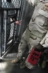 | Keywords: Navy barber meets with a detainee DVIDS367050.jpg en The Joint Detention Group barber a Navy Ship ™s Serviceman speaks to a detainee about trimming his beard in Camp VI Feb 10 The barber is attached to the Navy Expeditionary Guard Battalion which provides a portion of the guard force inside the detention facilities Traditionally in the Navy Ship ™s Serviceman manages the ship ™s barber shop laundry dry cleaning and tailor departments 2011-02-10 Petty Officer 1st Class David P Coleman https //www dvidshub net/image/367050 110210-N-+++++-158 2011-02-14 12 20 GUANTANAMO BAY CU PD-USGov-Military-Navy Guantanamo Bay Images from DoD uploaded by Fæ |