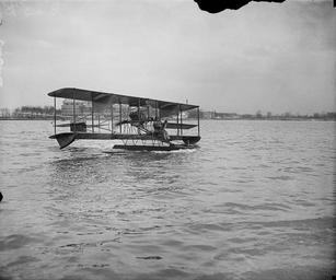 | Keywords: Navy flyer takes 12-year seaplane on its first flight.jpg Photograph en Navy flyer takes 12-year seaplane on its first flight After lying in storage at the Washington Navy Yard more than 12 years an obsolete 1915 model Curtiss seaplane on its maiden flight today on the by Commander H C Richardson crack U S Navy who is shown at the controls in this photograph Commander Richardson is planning to put through various tests to compare its behavior to that craft of modern construction for the benefit of Naval officials The United States Army War College shown in background Harris Ewing 1928-02-10 1 negative glass 4 x 5 in or smaller LOC-image hec 34771 accession number LC-DIG-hec-34771 digital file from original negative Call Number LC-H2- B-2545 P P Rights Advisory No known restrictions on publication Title from unverified caption data on negative or negative sleeve On sleeve Watch Your Credit Line Copyright by Harris and Ewing Gift; Harris Ewing Inc 1955 General information about the Harris Ewing Collection is available at http //hdl loc gov/loc pnp/pp hec DC Past http //dcpast com/post/62897314053/1928-curtiss-seaplane-maiden-flight <gallery> 34771a tif tif </gallery> Custom license marker 2013 10 01 PD-Harris-Ewing Curtiss Model E Washington Navy Yard Uploaded with UploadWizard Roosevelt Hall National War College |