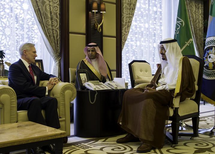 Keywords: Navy secretary in Saudi Arabia 130518-N-AC887-004.jpg en Secretary of the Navy Ray Mabus meets with the Crown Prince of Saudi Arabia Salaman bin Abdulaziz in Jeddah Saudi Arabia Mabus is in Saudi Arabia as part of a larger visit throughout the region where he is meeting with military and civilian leaders to discuss security in the region and speaking with Sailors and Marines to thank them for their service and sacrifice U S Navy photo by Chief Mass Communication Specialist Sam Shavers/Released 2013-05-18 Samuel Shavers https //www dvidshub net/image/937072 130518-N-AC887-004 2013-05-20 23 10 JEDDAH SA PD-USGov-Military-Navy Ray Mabus Images from DoD uploaded by Fæ |