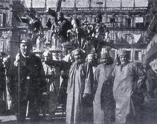 Keywords: Nazareno 1898.jpg es Paso de la Congregación de Jesús Nazareno de Salamanca en la procesión del Santo Entierro celebrada el Viernes Santo 8 de abril de 1898 a su paso por la Plaza Mayor 1898-04-08 Revista Madrugada Hermandad Dominicana de Salamanca anonymous Custom license marker 2013 08 24 PD-old Holy Week in Salamanca 1898 in Spain Sculptures of Jesus Christ bearing the Cross in Spain Uploaded with UploadWizard Church sculptures in the province of Salamanca Plaza Mayor Salamanca |