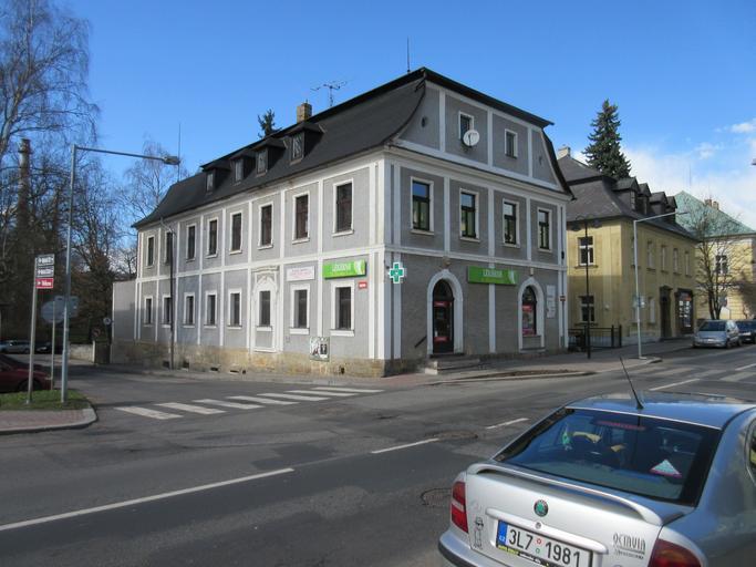 Keywords: NB Lékárna U Zlatého lva.JPG cs Lékárna je v Novém Boru T G Masaryka 42 křižovatka s Wolkerovou ulicí own Zákupák 2015-04-04 Wolkerova Nový Bor NB TGM 42