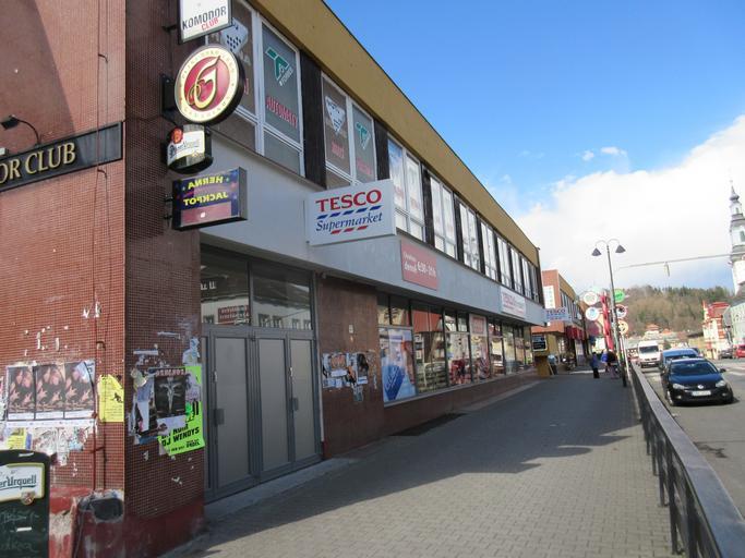 Keywords: NB Tesco.JPG cs Budova novoborské prodejny Tesco v patře s restaurací own Zákupák 2015-04-04 NB TGM 830