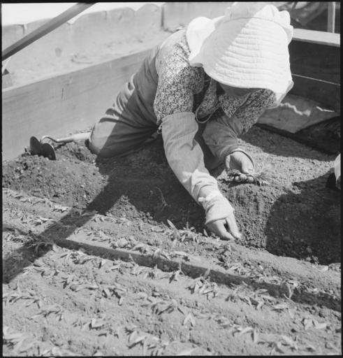 Keywords: Near Centerville, California. This farm woman of Japanese ancestry is transplanting tomato plants i . . . - NARA - 537667.jpg Scope and content The full caption for this photograph reads Near Centerville California This farm woman of Japanese ancestry is transplanting tomato plants into growing beds prior to evacuation General notes 537667 Local identifier 210-G-C321 Department of the Interior War Relocation Authority 02/16/1944 - 06/30/1946 NARA-Author Lange Dorothea 1895-1965 Photographer 1372774 <br /> Still Picture Records Section Special Media Archives Services Division NWCS-S National Archives at College Park 8601 Adelphi Road College Park MD 20740-6001 1942-03-27 Record group Record Group 210 Records of the War Relocation Authority 1941 - 1989 Record group ARC 537 Central Photographic File of the War Relocation Authority compiled 1942 - 1945 Series ARC 536000 File unit File unit ARC Variant control numbers NAIL Control Number NWDNS-210-G-C321 Other versions <gallery> File Near_Centerville _California _This_farm_woman_of_Japanese_ancestry_is_transplanting_tomato_plants_i_ _ _ _-_NARA_-_537667 tif tif File Near_Centerville _California _This_farm_woman_of_Japanese_ancestry_is_transplanting_tomato_plants_i_ _ _ _-_NARA_-_537667 jpg jpg </gallery> NARA-cooperation PD-USGov Japanese American internment processing in Centerville Alameda County California Women at work in California Farms in California Solanum lycopersicum Dorothea Lange Black and white photographs of women |