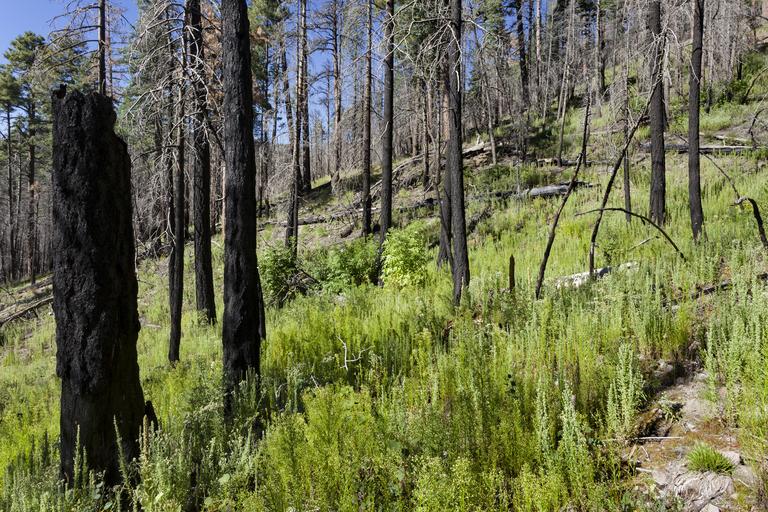 Keywords: West side of the Black Range, south of McKnight Peak near the crest above East Canyon, 32.97098 -107.84194, Grant County, New Mexico, 18 Sep 2016. Recently burned Douglas fir forest, with <i>Sambucus caerulea, Conyza canadensis, Erigeron bellidiastrum</i> var. <i>robustus, Erigeron neomexicanus, Heliomeris multiflora, La&eum;nnecia schiedeana, Leibnitzia lyrata, Pseudognaphalium, Phacelia heterophylla, Pennellia longifolia, Robinia neomexicana, Oenothera pubescens, Pseudotsuga menziesii, Fragaria vesca</i> subsp. <i>bracteatus, Prunus virginiana, Populus tremuloides, Verbascum thapsus,</i> etc. |