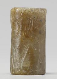 | Keywords: Near Eastern - Cylinder Seal with Bull and Lion on Hind Legs - Walters 42720 - Side E.jpg The scene depicts two sets of battling beasts The first is a strangely posed bull-man wrestling with a fantastic lion-like creature; the second is another strangely posed bull-man wrestling with a composite horned caprid/bull creature There is one register of cuneiform date brown and white stone cm 2 9 1 5 accession number 42 720 8235 Sadie Jones Mrs Henry Walters New York date and mode of acquisition unknown Sale Joseph Brummer New York 1941 Walters Art Museum 1941 by purchase Museum purchase 1941 Inscription place of origin Mesopotamia Walters Art Museum license Cylinder seals in the Walters Art Museum Art of the ancient Near East Cuneiform on media Walters cylinder seal 42720 Cuneiform on cylinder seals Walters Art Museum cylinder seals with cuneiform IGI cuneiform Ši cuneiform Ud cuneiform DINGIR god-as-star Sumerogram Media contributed by the Walters Art Museum needs category review |