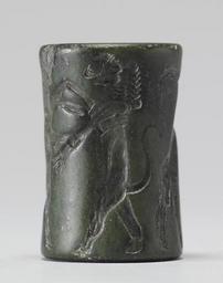 | Keywords: Near Eastern - Cylinder Seal with Figures Wrestling Animals - Walters 42707 - Side C.jpg The scene includes a bearded nude hero wrestling a horned bovid and a bull-man wrestling a lion Additionally there is a cuneiform inscription in two registers date Old Akkadian green stone cm 3 1 1 9 accession number 42 707 5055 Sadie Jones Mrs Henry Walters New York date and mode of acquisition unknown Sale Joseph Brummer New York 1941 Walters Art Museum 1941 by purchase Museum purchase 1941 Inscription place of origin Padua Italy Walters Art Museum license Cylinder seals in the Walters Art Museum Art of the ancient Near East Media contributed by the Walters Art Museum needs category review |