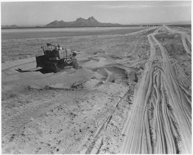 | Keywords: Near Eloy, Pinal County, Arizona. Levelling new desert land for cotton and flax production. Preparat . . . - NARA - 522494.jpg Scope and content Full caption reads as follows Near Eloy Pinal County Arizona Levelling new desert land for cotton and flax production Preparation of land for irrigation by California operators is done by large Arizona contracting firms This bulldozer operator and family live in a trailer on edge of field while work on this 4 1/2 sections progresses General notes 522494 Local identifier 83-G-44325 Department of Agriculture Bureau of Agricultural Economics Division of Economic Information ca 1922 - ca 1953 NARA-Author Lange Dorothea 1895-1965 Photographer 1372774 <br /> Still Picture Records Section Special Media Archives Services Division NWCS-S National Archives at College Park 8601 Adelphi Road College Park MD 20740-6001 1940-11 Record group Record Group 83 Records of the Bureau of Agricultural Economics 1876 - 1959 Record group ARC 412 Photographic Prints Documenting Programs and Activities of the Bureau of Agricultural Economics and Predecessor Agencies compiled ca 1922 - ca 1947 documenting the period ca 1911 - ca 1947 Series ARC 521048 File unit File unit ARC Variant control numbers NAIL Control Number NWDNS-83-G-44325 Other versions <gallery> File Near_Eloy _Pinal_County _Arizona _Levelling_new_desert_land_for_cotton_and_flax_production _Preparat_ _ _ _-_NARA_-_522494 tif tif File Near_Eloy _Pinal_County _Arizona _Levelling_new_desert_land_for_cotton_and_flax_production _Preparat_ _ _ _-_NARA_-_522494 jpg jpg </gallery> NARA-cooperation PD-USGov Dorothea Lange Pinal County Arizona Caterpillar bulldozers |