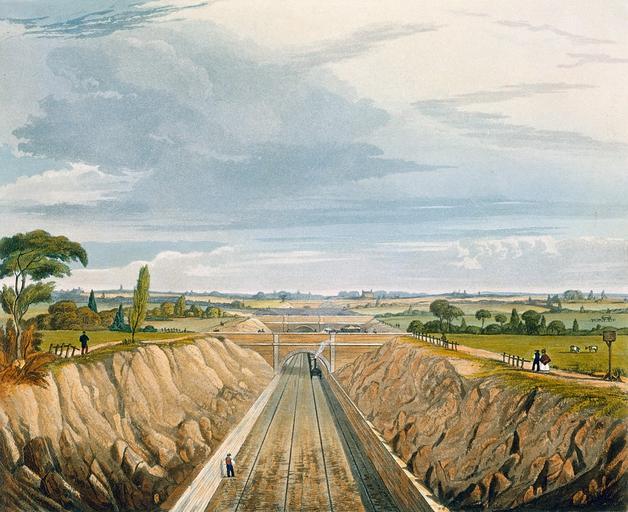 Keywords: Near Liverpool looking towards Manchester, from Bury's Liverpool and Manchester Railway, 1831 - artfinder 267573.jpg Moorish Arch looking from the Tunnel from Bury's Liverpool and Manchester Railway 1831 - artfinder 122454 jpg Rainhill Bridge from Bury's Liverpool and Manchester Railway 1831 - artfinder 3408 jpg Artwork Creator S G Hughes en A section of the w Liverpool and Manchester Railway in a shallow cutting between Broad Green railway station Broad Green and Roby railway station Roby <br>Cornish 1837 describes this part of the line as a pleasant well-cultivated country covered with seats of the nobility and gentry having from the line an appearance highly interesting and picturesque p http //books google co uk/books id OG_fAAAAMAAJ pg PA52 52 1831 aquatint object history exhibition history credit line The original watercolour picture by T T Bury is in the page http //media artfinder com/works/r/bal/3/7/5/267573_full_1024x835 jpg image PD-old-100 DEFAULTSORT 1831 11 Bury's Coloured Views on the Liverpool and Manchester Railway 1831 10 Engravings by S G Hughes Engravings after pictures by Thomas Talbot Bury |