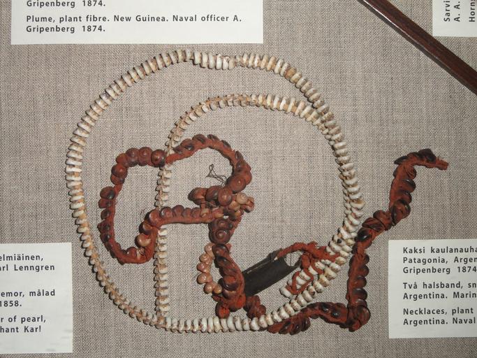| Keywords: Necklaces, Patagonia, 1874 - Museum of Cultures (Helsinki) - DSC04986.JPG en Exhibit in the Museum of Cultures Helsinki Finland Photography was permitted in the museum without restriction Daderot 2012-08-16 05 14 19 Daderot cc0 cc0 Miscellany in the Museum of Cultures Helsinki |