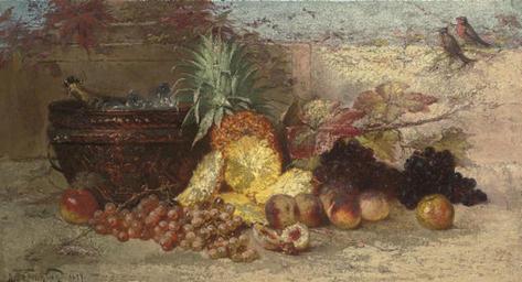 MAKE A MEME View Large Image Nel Grönland - Trauben, Pfirsiche, Ananas und Champagner.jpg Nelius Grönland German 1859-1918 en Grapes peaches a pineapple and champagne 1899 oil canvas cm 64 1 115 object history credit line signed and dated 'Nel Grönland 1899' lower ...