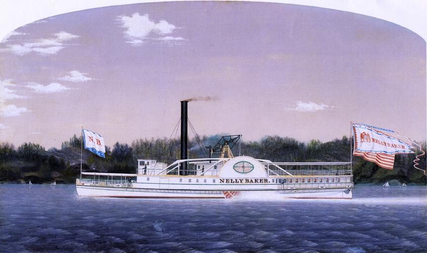 Keywords: Nelly Baker (steamboat) by Bard.jpg en Nelly Baker New England steamboat built 1855 Oil on canvas by James Bard unsigned http //www the-athenaeum org/ The Athenaeum org Creator James Bard 1855 PD-old-100 Original in private collection as of 1997 Also reproduced Mariner's Museum and Peluso Anthony J Jr The Bard Brothers -- Painting America under Steam and Sail Abrams New York 1997 ISBN 0-8109-1240-6 James Bard 1851-1860 works Steamboats of New England PD-old-100 Images from the-athenaeum org |