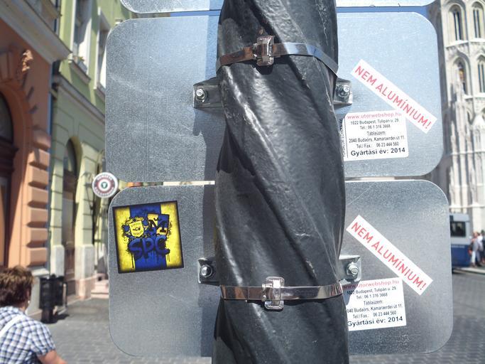 | Keywords: Nem Aluminium traffic sign reverse.JPG en The reverse side of two traffic signs in Budapest Hungary on Tárnok utca close to Matthias Church There is a Nem alumínium No aluminium sticker on each of them intended to discourage would-be thieves from stealing them for resale as scrap 2014-08-16 11 43 00 own Jan Pešula cc-zero Uploaded with UploadWizard Road signs in Hungary Prevention | ||||