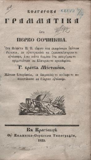 Keywords: Neofit-Rilsi-Bulgarian-Grammer-Book-Cover.jpg Ко ица на Бълга ска г аматика на еофит Рилски own scanned 1835 Neofit Rilski PD-old Title pages 1835 books Bulgarian literature Neofit Rilski Books from Austria Books in Bulgarian Textbooks