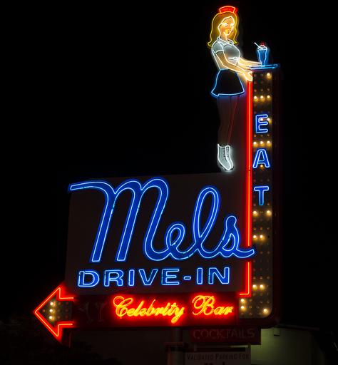 | Keywords: Neon sign for Mel's Drive-In and "celebrity bar" in the Hollywood section of Los Angeles, California LCCN2013631471.tif 1 photograph digital tiff file color Notes Title date and keywords provided by the photographer ; The restaurant part of a small California chain of diners is located in the historic Max Factor building that includes a beauty salon whose client list at one time included Jean Harlow Bette Davis and most of the leading movie actresses in Hollywood ; Credit line The Jon B Lovelace Collection of California Photographs in Carol M Highsmith's America Project Library of Congress Prints and Photographs Division ; Forms part of Jon B Lovelace Collection of California Photographs in Carol M Highsmith's America Project in the Carol M Highsmith Archive ; Gift; The Capital Group Companies Charitable Foundation in memory of Jon B Lovelace; 2012; DLC/PP-2012 063 2013 Creator Carol M Highsmith Library of Congress Catalog http //lccn loc gov/2013631471 Image download https //cdn loc gov/master/pnp/highsm/24200/24293a tif Original url http //hdl loc gov/loc pnp/highsm 24293 No known restrictions on publication LOC-image highsm 24293 PD-Highsmith Images uploaded by Fæ The Jon B Lovelace Collection of California Photographs in Carol M Highsmith's America Project Library of Congress Prints and Photographs Division Jon B Lovelace Collection of California Photographs in Carol M Highsmith's America Project in the Carol M Highsmith Archive Photographs by Carol M Highsmith |