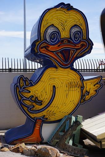 Keywords: neon sign museum duck neon las vegas casino gambling sign vacation travel yellow orange