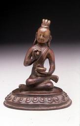 | Keywords: Nepalese - A Tantric Yogin - Walters 543032.jpg This figure represents a Yogin wearing his yogic band over his left shoulder Like a divinity he sits on a lotus in the heroic virusana posture In his lap he holds a skull cup revealing his role as a tantric teacher This posture and iconography is common to Pala sculpture of the 11th and 12th centuries It is likely that this figure represents a mahasiddha a tantric teacher revered for having achieved siddhi or perfections A group of eighty-four mahasiddhas was revered by both Hindus and Buddhists Two of them Matsyendranatha and Gorakhnatha became the foci of cults in Nepal This figure was likely part of a 12th-century altar devoted to one of these mahasiddhas It evidently was revered for quite some time as the rubbing associated with devotional practice has rendered its surface features quite muted century 12 copper alloy cm 10 5 8 9 7 6 accession number 54 3032 37055 Gantan Shaka Kathmandu Nepal John and Berthe Ford Baltimore Winter 1974 by purchase Walters Art Museum John Berthe Ford 2007 Desire and Devotion Art from India Nepal and Tibet in the John and Berthe Ford Collection The Walters Art Museum Baltimore; Birmingham Museum of Art Birmingham; Santa Barbara Museum of Art Santa Barbara; Albuquerque Museum Albuquerque 2001-2003 place of origin Nepal Walters Art Museum license Nepalese art in the Walters Art Museum Metalwork of Nepal Bronze of Nepal Yogin |