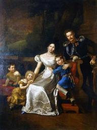 | Keywords: Neplyuev by Mitoire.jpg ru Иван Иванович еплюев 1800 1858 с женой Бе той Васильевной у Дибич 1794 1869 и детьми иколаем 1825 1890 атальей 1826 1856 и Александ ой 1828 1855 скан Benois Charles Mitoire 1830-е Benois Charles Mitoire House of Neplyuev Russian promenade portraits Group portraits with 5 persons Portraits of parents and children Family portraits of Russia PD-old |
