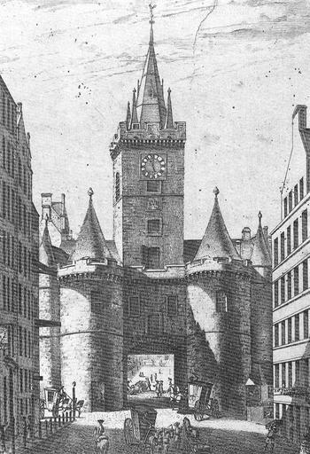 Keywords: Netherbow E.jpg The Netherbow the main gate into Edinburgh prior to its demolition in 1764 Seen from Canongate to the east outside Scanned from a book < 1764 Author PD-Old-100 Buildings in Edinburgh Gatehouses in Scotland Royal Mile Edinburgh town walls |