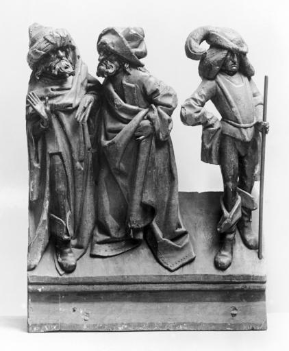 | Keywords: Netherlandish - Spectators from a Passion Altarpiece - Walters 6161.jpg Apparently reacting to an event they have just witnessed two priests engage in a heated conversation on the left while on the right an ordinary citizen leans on his staff They would have been some of the spectators at the foot of a Crucifixion and their animation and typical 15th-century clothing would have added a sense of immediacy to the altar's central narrative The Brussels altarpiece shows how such groups of figures were combined The vigorous angular body language of the spectators is characteristic of stylistic trends in Antwerp as opposed to the greater restraint more typical of workshops in Brussels ca 1490 Late Medieval paint on wood oak cm 41 5 33 6 accession number 61 61 22041 Henry Walters Baltimore date and mode of acquisition unknown Walters Art Museum Henry Walters Acquired by Henry Walters place of origin Antwerp Belgium Walters Art Museum license Medieval art in the Walters Art Museum Renaissance sculpture in the Walters Art Museum Art of the Netherlands Media contributed by the Walters Art Museum needs category review |