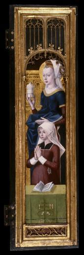 Keywords: Netherlandish - Triptych with Lamentation Over Christ with Donors and Saints - Walters 37242 - Front Right.jpg This altarpiece was probably made for the family chapel of the couple portrayed on the wings The elegantly carved central scene of the mourning over the dead Christ is set into a niche as if in a church After the central scene was carved painted and gilded probably in Brussels the unfinished triptych would have been sent to the shop of a painter The style suggests that he was influenced by Hugo van der Goes active ca 1440-1482 and probably worked in Ghent There the wings were finished with commissioned portraits The wings show the donors kneeling in prayer accompanied by their patron saints John the Baptist and Mary Magdalene The linked initials I and M are surely those of the donors' first names Jan I and J were written the same and Maria which we can guess from their patron saints but their family name is unknown The face of Maria is subtly painted while the coarse execution of the husband's face is a later alteration This is probably Maria's second husband whose profile replaces the scraped remains of an earlier portrait presumably Maria's first dead husband For another portrait of a donor with John the Baptist by Hugo van der Goes see Walters 37 296 ca 1490 Early Modern oil and gold leaf on panel wings painted and gilded wood central section open cm 76 2 82 9 22 8 accession number 37 242 25349 Jacques Seligmann Paris by purchase Henry Walters city Baltimore Walters Art Museum Henry Walters Acquired by Henry Walters 1914 Time Sanctified The Book of Hours in Medieval Art and Life The Walters Art Gallery Baltimore 1988 Small Northern European Portraits from The Walters Art Gallery Baltimore National Gallery of Art Washington 2000 place of origin Brussels Belgium Walters Art Museum license 3D Renaissance paintings in the Walters Art Museum Medieval art in the Walters Art Museum Art of the Netherlands Paintings in the Walters Art Museum Kneeling in prayer in art |