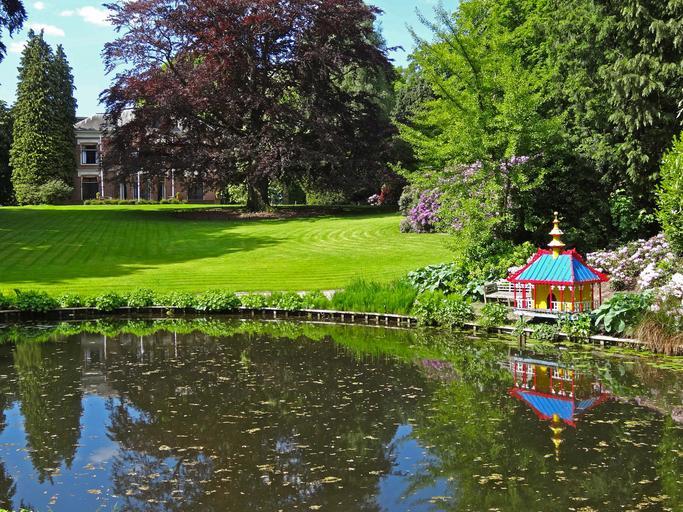 Keywords: netherlands estate mansion house home buildings architecture sky pond water reflections grass grounds miniature temple trees summer spring nature outside