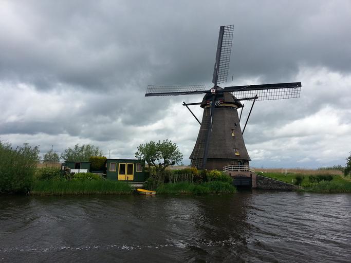 Keywords: netherlands holland windmill channel trueb waterways water mill kinderdijk weather mood riverside historically