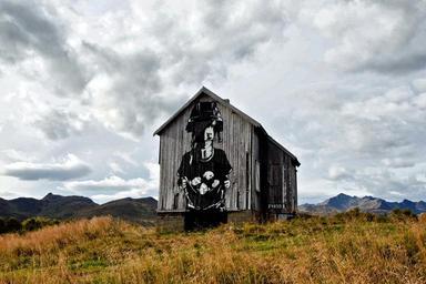 Keywords: netherlands landscape scenic barn shed wood wooden painting mural landscape scenic rural country countryside sky clouds