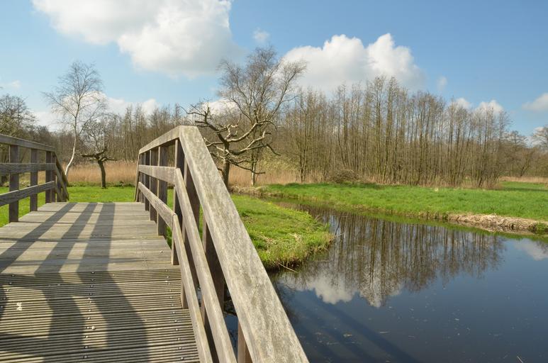 Keywords: netherlands nature landscape ankeveen water grass green bridge air cloud