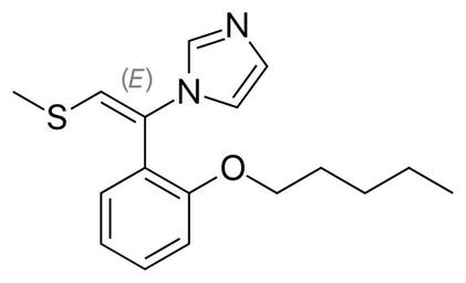 | Keywords: Neticonazole.svg validSVG Skeletal formula of neticonazole Created using http //www acdlabs com/download/chemsk html ACD/ChemSketch 10 0 http //www inkscape org Inkscape and http //www vim org vim own Fvasconcellos 2008-05-31 Alkene derivatives Imidazole antifungals Methyl thioethers Pentyl ethers Phenol ethers |