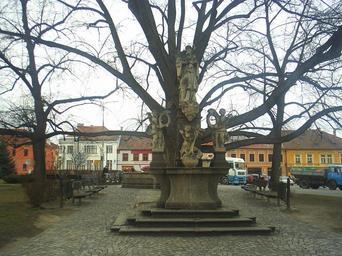 Keywords: Netolice-skulptajxo sur la placo.JPG Netolice - sousoší sv Jana Nepomuckého 1738 na náměstí Netolice - skulptaĵo sur la placo own tuurq Mírové náměstí Netolice Statues of John of Nepomuk in Prachatice District
