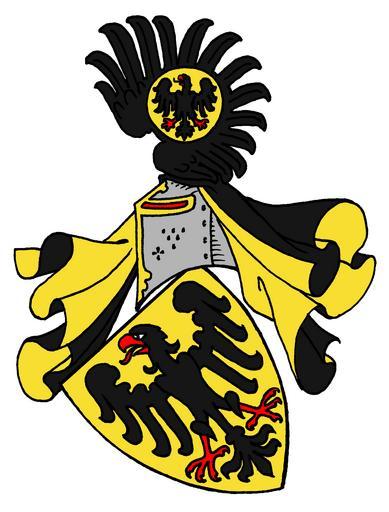 Keywords: Neuenahr-Wappen.png Stammwappen der Grafen von Neuenahr Graf Otto von Neuenahr 1231 In Gold ein schwarzer Adler mit roter Bewehrung Helmzier ein schwarzer Flug belegt mit einer runden Scheibe auf welcher der Adler wiederholt wird oder ein wachsender schwarzer Adler Helmdecke schwarz-golden 1221 - 1358 herrschten die Grafen von Neuenahr die um 1220 die bereits 1372 zerstörte Burg Neuenahr erbauten 1358 - 1425 die Grafen von Neuenahr-Saffenberg 1425 - 1545 die Grafen von Neuenahr-Saffenberg-Virneburg 1545 fiel nach dem Aussterben der Grafen von Virneburg die Grafschaft als erledigtes Lehen zurück an den direkten Lehnsherrn den Herzog von Jülich der 1545 - 1609 Graf von Neuenahr ist Im Vertrag von Xanten 1614 fällt die Grafschaft Neuenahr an das Herzogtum Pfalz-Neuburg 1685-1797 gehörte sie zur Kurpfalz später kam sie an Preußen Blasonierung und alte Wappenabbildungen †’ http //www dr-bernhard-peter de/Heraldik/Galerien/galerie773 htm ; http //www dr-bernhard-peter de/Heraldik/wappenrolle26 htm century 13 Wappengrafik erstellt von LeoDavid Cc-zero Wappenrecht Coats of arms of families of Germany - N Or an eagle sable beaked langued and membered gules |