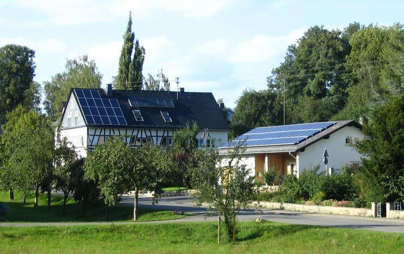 Keywords: Neuerkirch-Photovoltaik01.jpg Photovoltaikanlagen in Neuerkirch own 2006-09-04 Markus Braun Neuerkirch Solar cell panels on roofs in Germany
