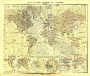 Keywords: Neumayer Atlas des Erdmagnetismus 1.jpg http //hdl handle net/10013/epic 31485 d001 Atlas des Erdmagnetismus Gotha Justus Perthes 20 S 5 Karten pdf 99 MB - No I Linien gleicher Deklination Isogonen Archive/Alfred Wegener Institute 1891 Georg Neumayer Author died more than 70 years ago - public domain PD-old Magnetic field maps of the world |