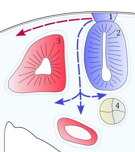 Keywords: Neural.crest.cells.migration.svg Cross section scheme of vertebrate embryo 1 neural crest 2 neural tube 3 dorsal somite 4 notochord Both paths of the neural crest cells migation marked by arrows red one is the dorsolateral path blue one signs the ventromedial path Схема попе ечного с еза за одыша позвоночного 1 не вный г ебень 2 не вная т убка 3 до сальный мезоде мальный сомит 3 хо да Пути миг ации клеток не вного г ебня обозначены ст елками до солате альный к асной вент омедиальный синей Neuralcrestroute jpg 2010-10-14 23 18 UTC Neuralcrestroute jpg Original uploader was Rockpocket at http //en wikipedia org en wikipedia derivative work Mithril <span class signature-talk >talk</span> <gallery> File Vies de la cresta neural png language ca File Neural crest cells migration svg language en File Vias de la cresta neural jpg language es </gallery> Vectorized and coloured the image Mithril Neuralcrestroute jpg Mithril Cell diagrams Zootomy Neural crest SVG cell biology |