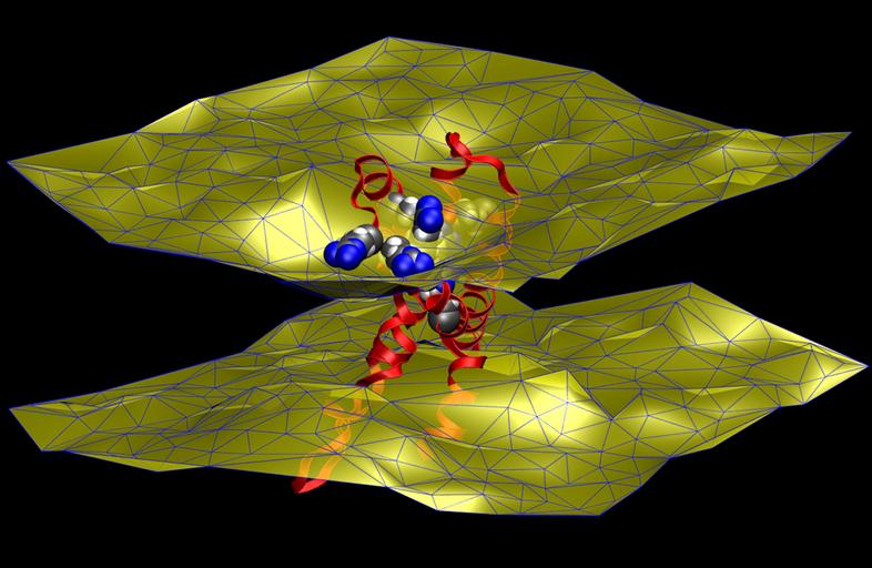 | Keywords: Neutron diffraction; Ion channels (5888008521).jpg An imaging technique known as neutron diffraction used along with molecular simulations revealed that an ion channels voltage sensing domain red yellow and blue molecule at center perturbs the two-layered cell membrane that surrounds it yellow surfaces causing the membrane to thin slightly Credit National Institute of Standards and Technology Disclaimer Any mention of commercial products within NIST web pages is for information only; it does not imply recommendation or endorsement by NIST Use of NIST Information These World Wide Web pages are provided as a public service by the National Institute of Standards and Technology NIST With the exception of material marked as copyrighted information presented on these pages is considered public information and may be distributed or copied Use of appropriate byline/photo/image credits is requested https //www flickr com/photos/usnistgov/5888008521/ Neutron diffraction; Ion channels 2009-12-01 11 15 https //www flickr com/people/63059536 N06 National Institute of Standards and Technology PD-USGov National Institute of Standards and Technology https //flickr com/photos/63059536 N06/5888008521 2016-09-07 02 31 11 United States Government Work Uncategorized 2016 September 9 |