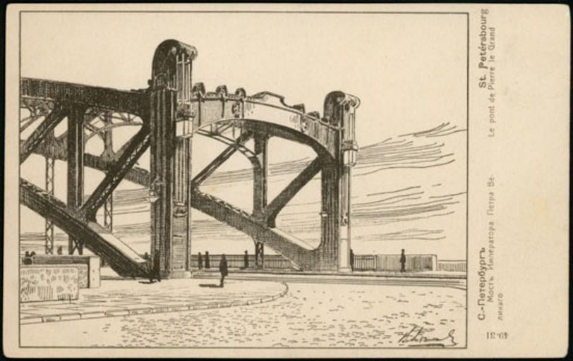 | Keywords: Neva River SPb 000000419 1 m.jpg Saint Petersburg Russia Peter the Great Bridge Санкт-Пете бу г Река Большеохтинский мост Saint-Pétersbourg Neva http //www nlr ru/petersburg/spbpcards/arterii/3 htm author 1900-1917 PD-old Postcards of bridges in Saint Petersburg Bolsheokhtinsky Bridge |