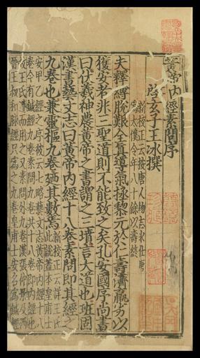 | Keywords: New Edition with Supplemental Annotations of The Inner Canon of the Yellow Emperor. Su wen WDL11409.jpg Artwork ru Ван Бин fr Wang Bing en Wang Bing zh 王冰 pt Wang Bing ar وانغ، بينغ es Wang Bing ru овое издание Канона Желтого импе ато а о внут еннем с дополнительными коммента иями Су вэнь fr Nouvelle édition avec annotations supplémentaires du Canon interne de l'Empereur Jaune Su wen en New Edition with Supplemental Annotations of The Inner Canon of the Yellow Emperor Su wen zh 新刊 注释文黃 內经素问 pt Nova edição com anotações suplementares do Cânone interno do Imperador Amarelo Su wen ar طبعة جديدة مزودة بكتابات ملحقة للقانون الداخلي للإمبراطور الأصفر سو وين ru Д евний медицинский текст <em> Хуанди нэй цзин </em> Канон Желтого импе ато а о внут еннем уже упоминался в аботе <em> И вэнь чжи </em> Т актат о лите ату е входящей в состав <em> Хань шу </em> Книга о Хань классической исто ии Китая составленной в 111 году нашей э ы Он состоял из двух частей каждая из кото ых включала девять цзюаней <em> Су вэнь </em> Основные воп осы и <em> Лин шу </em> Духовный сте жень <em> Су вэнь </em> посвящена тео етическим основам китайской медицины и ее диагностическим методам в то в емя как в Лин шу под обно ассмат ивается акупункту а азвание <em> Хуанди</em><em> нэй цзин </em> часто относят только к более влиятельному тексту <em> Су вэнь </em> По п ошествии столетий часть мате иалов из этой аботы была уте яна в том числе седьмой цзюань <em> Су вэнь </em> Работа изложена в фо ме диалога п еимущественно между Желтым импе ато ом и одним из его в ачей Цибо В <em> нэй цзин </em> п едставлены тео етические основы т адиционной китайской медицины под обно ассказывается о внут енних о ганах и ассмат иваются основные и вто остепенные каналы человеческого тела п ичины болезни патология диагностика подде жание хо ошего здо овья и д угие воп осы В аботе излагается тео ия согласно кото ой вселенная состоит из азличных сил и п инципов таких как инь и ян Ци и пять стихий или фаз Эти силы поддаются ациональному познанию и человек способен сох анить баланс или восстановить баланс и здо овье поняв законы этих п и одных сил Впе вые <em> Канон о внут еннем </em> был составлен в пе иод С ажающихся ца ств 475 221 гг до нашей э ы Позднее <em> Су вэнь </em> и <em> Лин шу </em> издавались по отдельности Большинство изданий <em> Су вэнь </em> выпускалось с коммента иями К числу наиболее анних относится издание шестого века выпущенное в пе иод Шести династий 220 589 гг с коммента иями Цюань Юаньци В 762 году в эпоху династии Тан Ван Бин выпустил пе е аботанное издание <em> Канона о внут еннем </em> с коммента иями основанное на аботе Цюань Юаньци и состоявшее из 24 цзюаней вместо о игинальных девяти К XI веку в эпоху династии Сун по п иказу импе ато а это сочинение было пе еиздано под едакцией в ача Линь И п и этом за основу была взята абота Ван Бина Более поздние издания большей частью п едставляли собой пе е аботанные ве сии издания выпущенного в эпоху Сун Здесь п едставлено издание эпохи Юань состоящее из 12 цзюаней однако по своему соде жанию оно п актически полностью совпадает с едакцией эпохи Сун В конце аботы имеется сделанная от уки надпись ученого эпохи ин кото ый именует себя бедным ученым из Циньшуя Данный экземпля анее находился в частной коллекции известного библиофила Чжан Се 1753 1808 гг жившего в пе иод п авления династии Цин и его внука Чжан Жунцзина одился в 1803 году <br> едицина китайская fr L'ancien texte médical <em>Huangdi nei jing</em> Canon interne de l'Empereur Jaune était déjà répertorié dans <em>Y</em><em>i wen zhi</em> Traité de littérature de <em>Han shu</em> Livre des Han livre classique d'histoire chinoise achevé en l'an 111 après J -C Il comportait deux textes <em>Su we