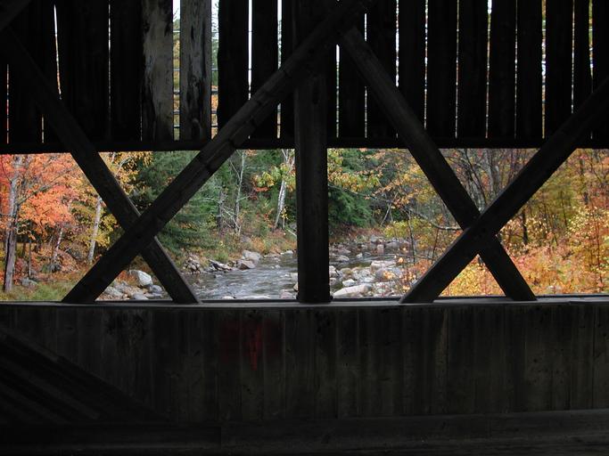 Keywords: new hampshire jackson covered bridge wooden windows stream forest rocks woods fall colors autumn fall historic planks boards bridge