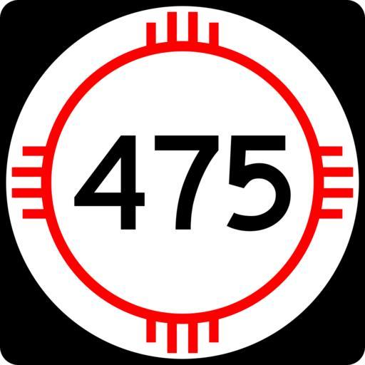 | Keywords: New Mexico 475.svg 750 mm by 750 mm 30 in by 30 in New Mexico state road shield made to the specifications of the http //nmshtd state nm us/upload/images/Plans_Specs_Estimates/Division 20700/701/701 pdf PS E Standard Drawings which specifies a 30 by 30 shield for 3-digit roads Pictures of actual shields were also used for reference Uses the Roadgeek 2005 fonts United States law does not permit the copyrighting of typeface designs and the fonts are meant to be copies of a U S Government-produced work anyway self-created using Inkscape and Image New Mexico 3di svg 2008-03-26 Mr Matté Own work all rights released Public domain New Mexico State Road shields Shields created by User Mr Matté |
