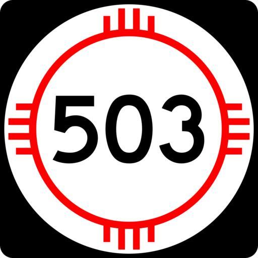 | Keywords: New Mexico 503.svg 750 mm by 750 mm 30 in by 30 in New Mexico state road shield made to the specifications of the http //nmshtd state nm us/upload/images/Plans_Specs_Estimates/Division 20700/701/701 pdf PS E Standard Drawings which specifies a 30 by 30 shield for 3-digit roads Pictures of actual shields were also used for reference Uses the Roadgeek 2005 fonts United States law does not permit the copyrighting of typeface designs and the fonts are meant to be copies of a U S Government-produced work anyway self-created using Inkscape and Image New Mexico 3di svg 2008-01-26 Mr Matté New Mexico State Road shields 503 Shields created by User Mr Matté |