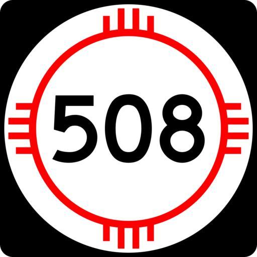 | Keywords: New Mexico 508.svg 750 mm by 750 mm 30 in by 30 in New Mexico state road shield made to the specifications of the http //nmshtd state nm us/upload/images/Plans_Specs_Estimates/Division 20700/701/701 pdf PS E Standard Drawings which specifies a 30 by 30 shield for 3-digit roads Pictures of actual shields were also used for reference Uses the Roadgeek 2005 fonts United States law does not permit the copyrighting of typeface designs and the fonts are meant to be copies of a U S Government-produced work anyway self-created using Inkscape and Image New Mexico 3di svg 2008-03-26 Mr Matté Own work all rights released Public domain New Mexico State Road shields Shields created by User Mr Matté |