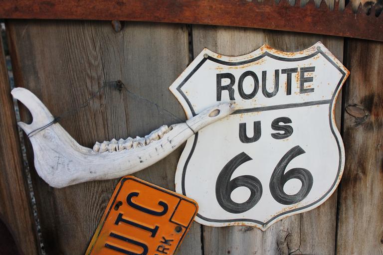 | Keywords: new mexico route 66 travel sign road highway historic america classic trip americana outdoor art vintage antique wooden fence bleached bone license plate wall art madrid number nostalgia retro desert roadside landmark historical 66 rustic rusted rust |