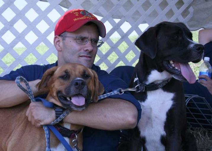 Keywords: New Orleans Tortuga kennel.jpg Residents and visitor of 'Camp Milo Otis' the kennel built by USS Tortuga sailors for New Orleans pets http //www tortuga navy mil/gallery/disaster-relief/kennel1/images/IMG_1426 jpg PD-USGov Dogs affected by Hurricane Katrina Men with glasses Males with baseball caps Males with dogs Two dogs |