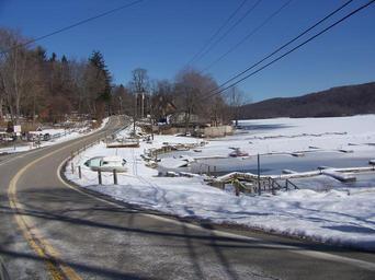 Keywords: new york winter snow landscape road highway trees sky blue country countryside rural cold scenery forest mountain