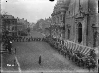 | Keywords: the great war thegreatwar great war greatwar world war one worldwarone world war i worldwari wwi first world war firstworldwar new zealand expeditionary force newzealandexpeditionaryforce nzef solesmes soldiers blackandwhite monochrome road outdoor black and white New Zealand Division leaving the town of Solesmes, France, after the armistice ending World War I. Shows rows of troops marching along a cobbled street. Photograph taken ca late November 1918 by Henry Armytage Sanders. Inscriptions: Inscribed - Photographer's title on negative -bottom left: H1230. Quantity: 1 b&w original negative(s). Physical Description: Dry plate glass negative 4 x 5 inches New Zealand Division leaving the town of Solesmes, France, after the armistice ending World War l. Royal New Zealand Returned and Services' Association :New Zealand official negatives, World War 1914-1918. Ref: 1/2-013777-G. Alexander Turnbull Library, Wellington, New Zealand. natlib.govt.nz/records/22794663 New Zealand Division leaving the town of Solesmes, France, after the armistice ending World War I. Shows rows of troops marching along a cobbled street. Photograph taken ca late November 1918 by Henry Armytage Sanders. Inscriptions: Inscribed - Photographer's title on negative -bottom left: H1230. Quantity: 1 b&w original negative(s). Physical Description: Dry plate glass negative 4 x 5 inches New Zealand Division leaving the town of Solesmes, France, after the armistice ending World War l. Royal New Zealand Returned and Services' Association :New Zealand official negatives, World War 1914-1918. Ref: 1/2-013777-G. Alexander Turnbull Library, Wellington, New Zealand. natlib.govt.nz/records/22794663 |