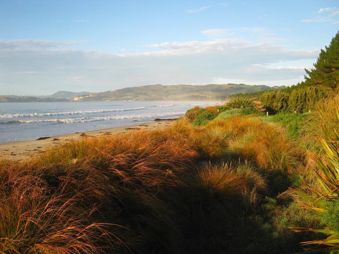 Keywords: new zealand sea ocean water plants shoreline sky clouds grass foliage nature outside