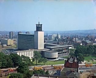 | Keywords: newcastle upon tyne newcastleupontyne 1960s colour photography colourphotography barras bridge barrasbridge buses newcastle civic centre newcastleciviccentre newcastle university newcastleuniversity 1969 aerial view aerialview roof commission products premises north east of england northeastofengland unusual buildings road grass vegetation vehicle car wheel car park carpark pole flag park lawn trees green clear blue sky clearbluesky smoke industry shadow walls window glass chimney pattern row fence timber brick stone heritage buildings heritagebuildings abstract july 1969 july1969 social daily life dailylife second half secondhalf twentieth century twentiethcentury outdoor architecture building View of the new Civic Centre, Newcastle upon Tyne, taken from the roof of Newcastle University, July 1969 (TWAM ref. DT.TUR/4/4356A). You can see an aerial view of this area taken a few months earlier here www.flickr.com/photos/twm_news/5157390851/in/set-72157625.... Tyne & Wear Archives presents a series of images taken by the Newcastle-based photographers Turners Ltd. The firm had an excellent reputation and was regularly commissioned by local businesses to take photographs of their products and their premises. Turners also sometimes took aerial and street views on their own account and many of those images have survived, giving us a fascinating glimpse of life in the North East of England in the second half of the Twentieth Century. (Copyright) We're happy for you to share these digital images within the spirit of The Commons. Please cite 'Tyne & Wear Archives & Museums' when reusing. Certain restrictions on high quality reproductions and commercial use of the original physical version apply though; if you're unsure please email archives@twmuseums.org.uk View of the new Civic Centre, Newcastle upon Tyne, taken from the roof of Newcastle University, July 1969 (TWAM ref. DT.TUR/4/4356A). You can see an aerial view of this area taken a few months earlier here www.flickr.com/photos/twm_news/5157390851/in/set-72157625.... Tyne & Wear Archives presents a series of images taken by the Newcastle-based photographers Turners Ltd. The firm had an excellent reputation and was regularly commissioned by local businesses to take photographs of their products and their premises. Turners also sometimes took aerial and street views on their own account and many of those images have survived, giving us a fascinating glimpse of life in the North East of England in the second half of the Twentieth Century. (Copyright) We're happy for you to share these digital images within the spirit of The Commons. Please cite 'Tyne & Wear Archives & Museums' when reusing. Certain restrictions on high quality reproductions and commercial use of the original physical version apply though; if you're unsure please email archives@twmuseums.org.uk |