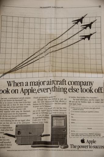 Keywords: newspaper advert advertisement vintage apple brand 1986 british computer