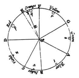 MAKE A MEME View Large Image Newton's colour circle.png Newton compared colours in the spectrum to a run of musical notes To this purpose he used a Dorian mode similar to a white-note scale on the piano starting at D He divided his colour wheel in musical proportions ...