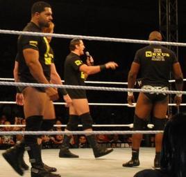 Keywords: Nexus WWE.jpg The Nexus at a Puerto Rico Raw Brand house show Visible are from left to right David Otunga Heath Slater Wade Barrett and Michael Tarver own 2010-09-03 Feedback The Nexus David Otunga Stu Bennett Michael Tarver Heath Slater
